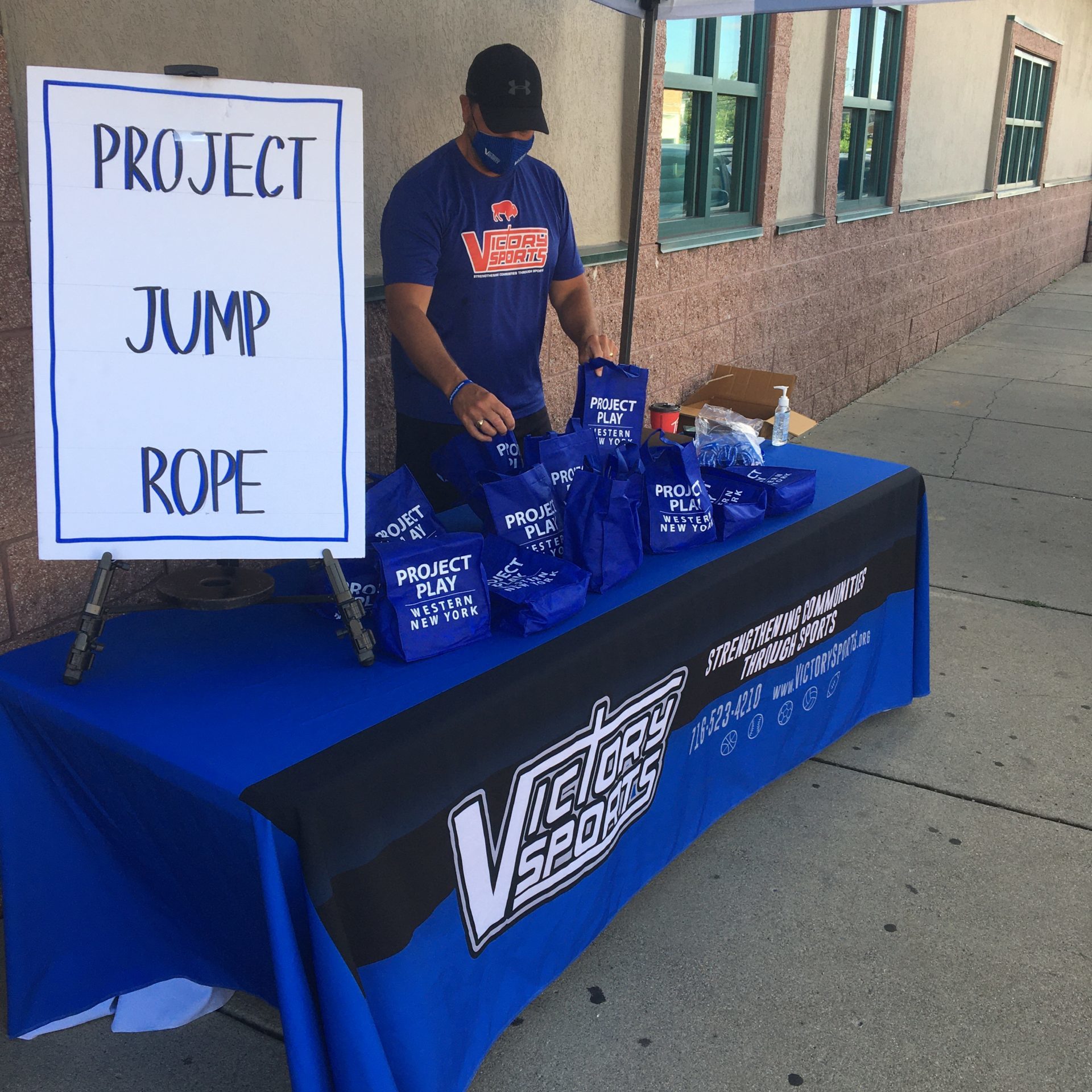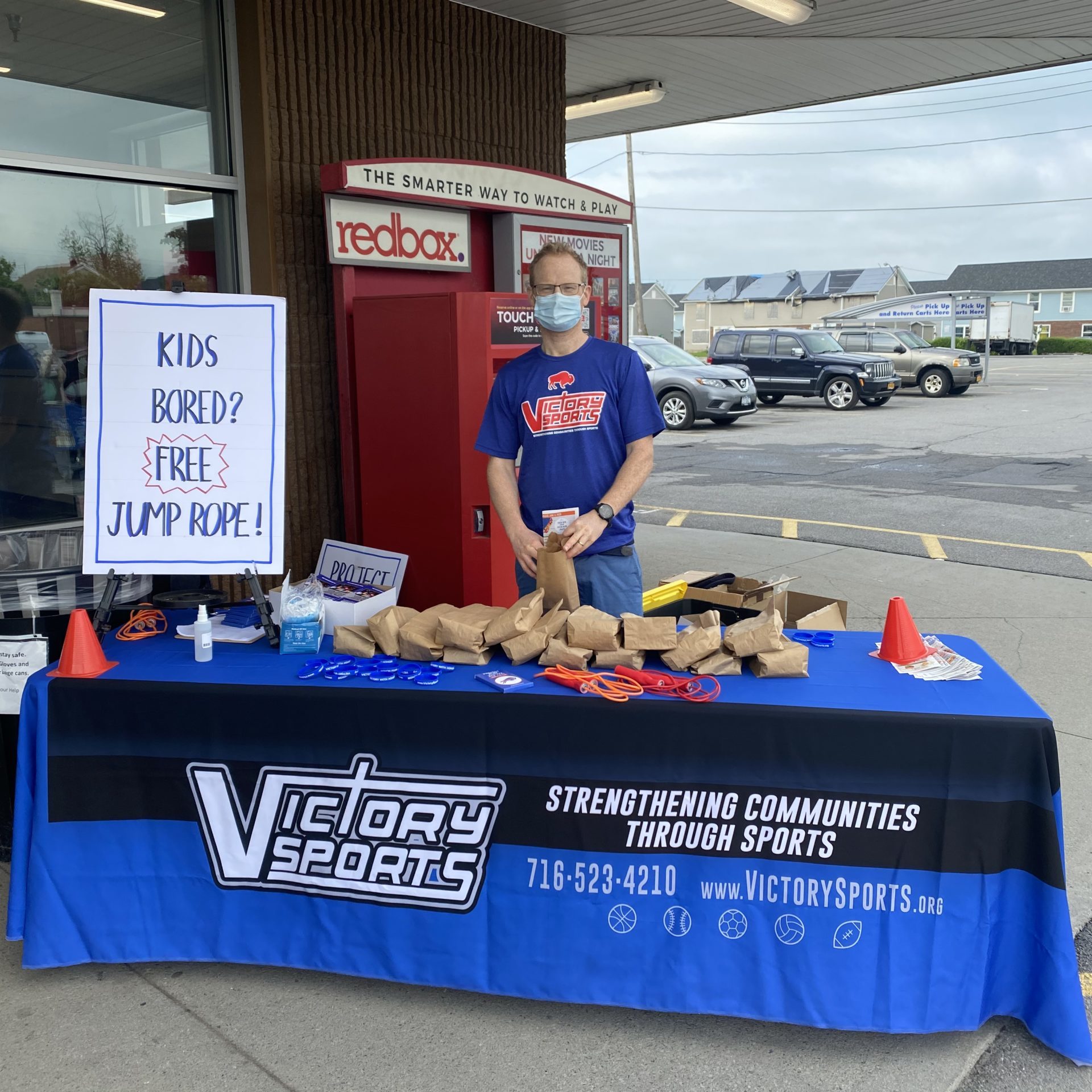 Over the coming weeks and months and as long as is necessary, Victory Sports will visit local grocery stores, food banks, health & wellness sites and other community events to give away free jump ropes and Project Play WNY activity cards to kids and parents.