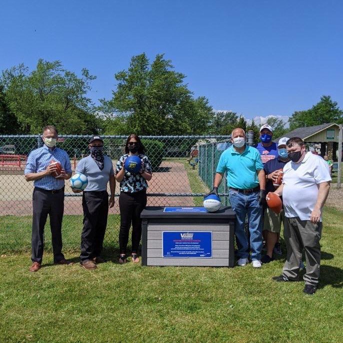 Following the launch of our Ball-Bin campaign 2 weeks ago, Victory Sports installed three more Ball-Bins this week in Erie County. Working in partnership with local town & rec. departments, we installed 2 Ball-Bins in the Town of Tonawanda on Tuesday and visited Griffith Street in Sloan on Wednesday to place another equipment distribution in a community playground.