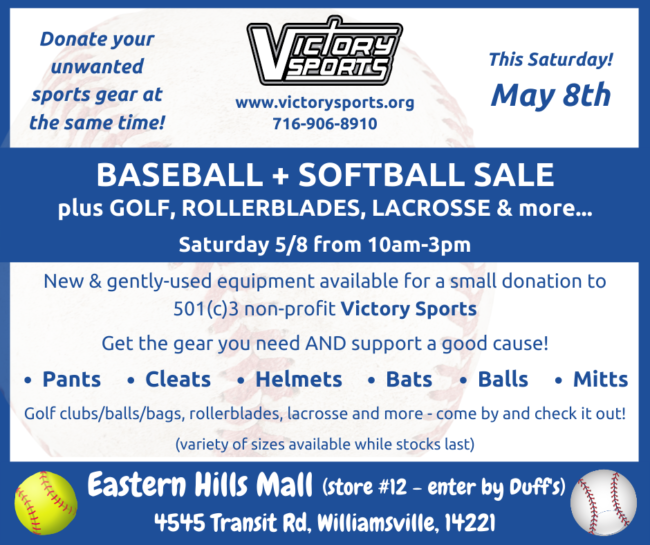 Final chance to grab Baseball & Softball gear this season! May 8th: 10a-3p Eastern Hills Mall, Williamsville, 14221 Store #12 on the floorplan – enter by Duff’s We’ll be at…