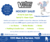 Hockey equipment sale announced for this coming Friday & Saturday 8/14-15