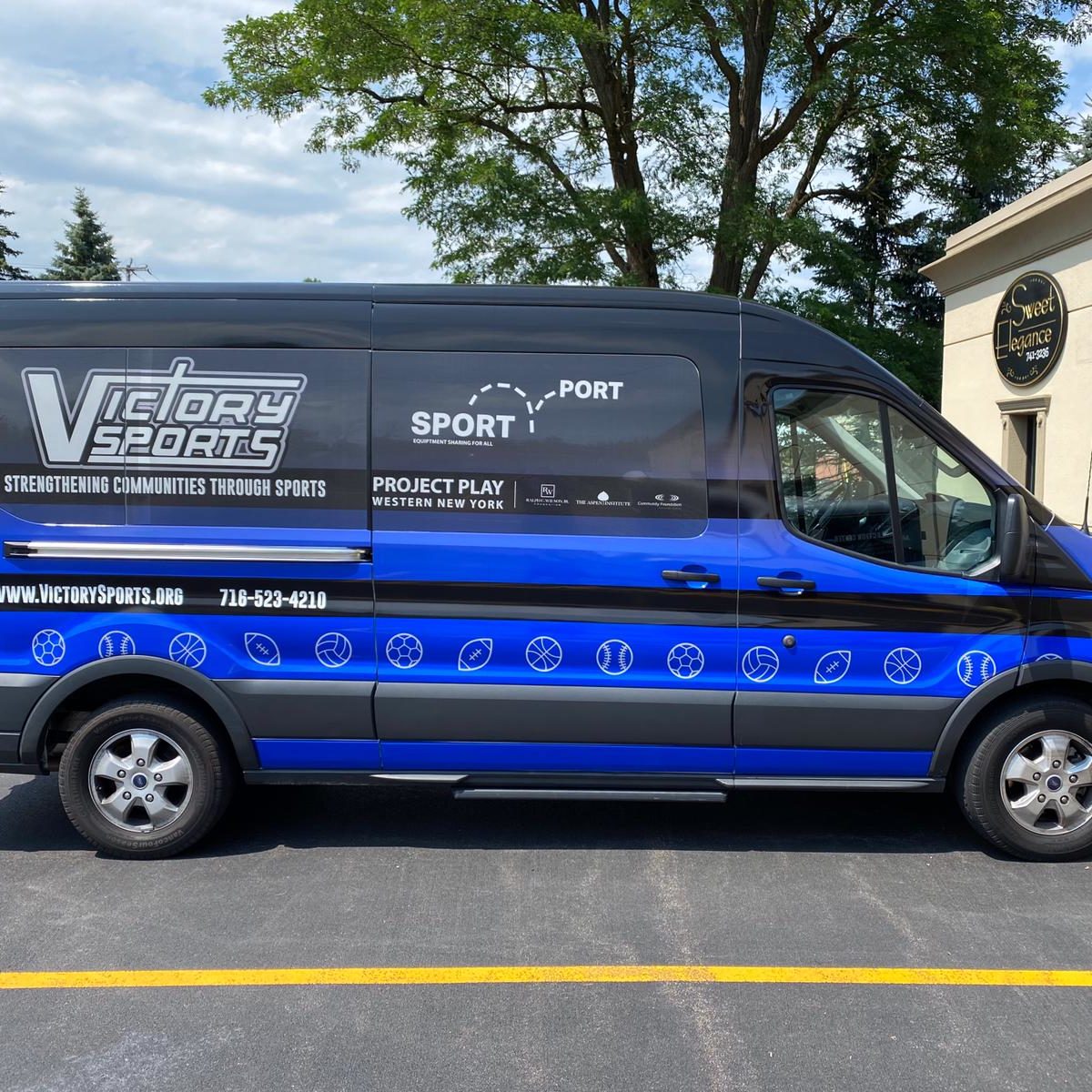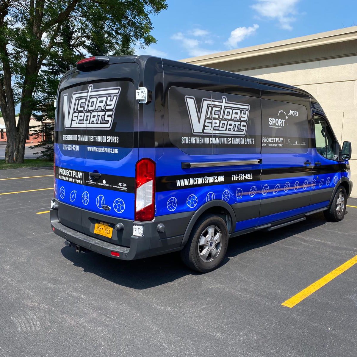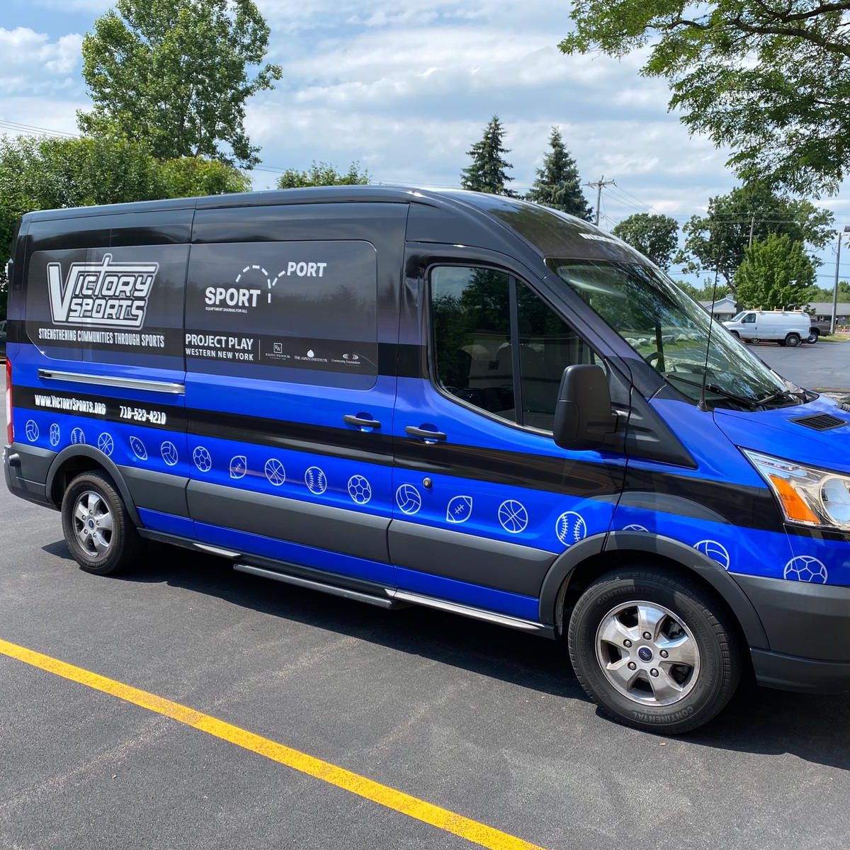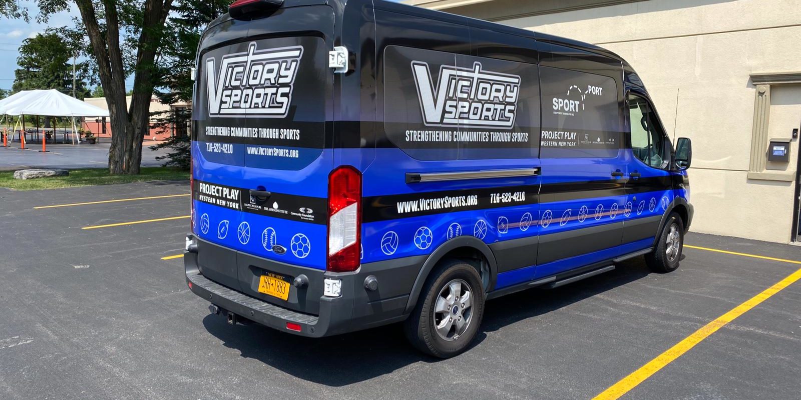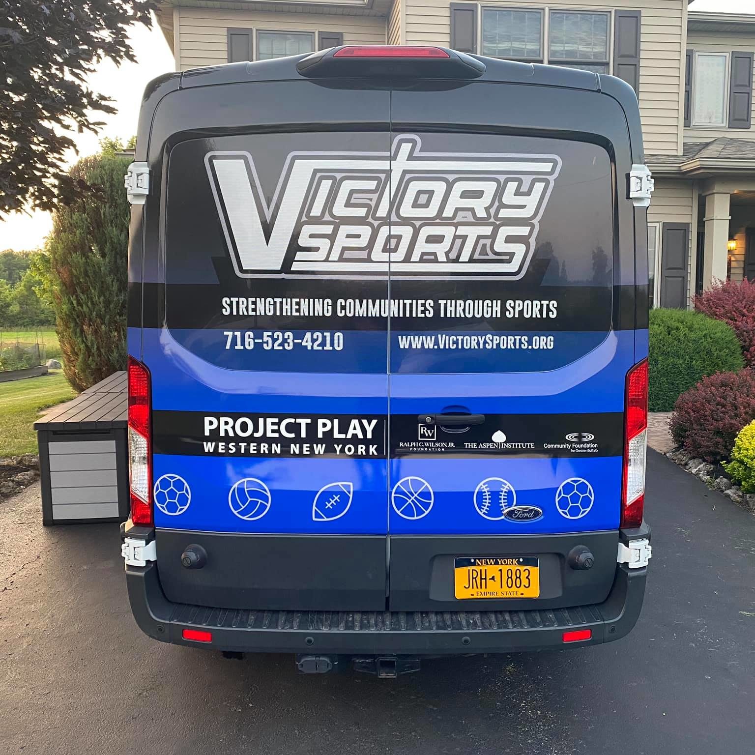 Our second new piece of infrastructure is our shiny new fully-branded vehicle! With invaluable support from the Ralph C. Wilson Jr, Foundation,we were able to purchase a large van to transport our equipment to kids otherwise cut-off from accessing sports opportunities. Getting a full-body Victory Sports branded wrap means it serves as a huge moving billboard for us as we travel. The Ralph C. Wilson Jr, Foundation targets all 8 counties of Western New York and whilst population centers in Greater Buffalo and Niagara Falls mean we have spent much of our time there, our new vehicle will transport us to Genesee, Cattaraugus, Chautauqua, Wyoming, Allegany and Orleans counties to make sure no kid in WNY is inactive because they don’t have equipment! We’ll be distributing close to 2000 Play Packs and will use the van every week to restock the 20 Ball-Bins we’ve placed across WNY.